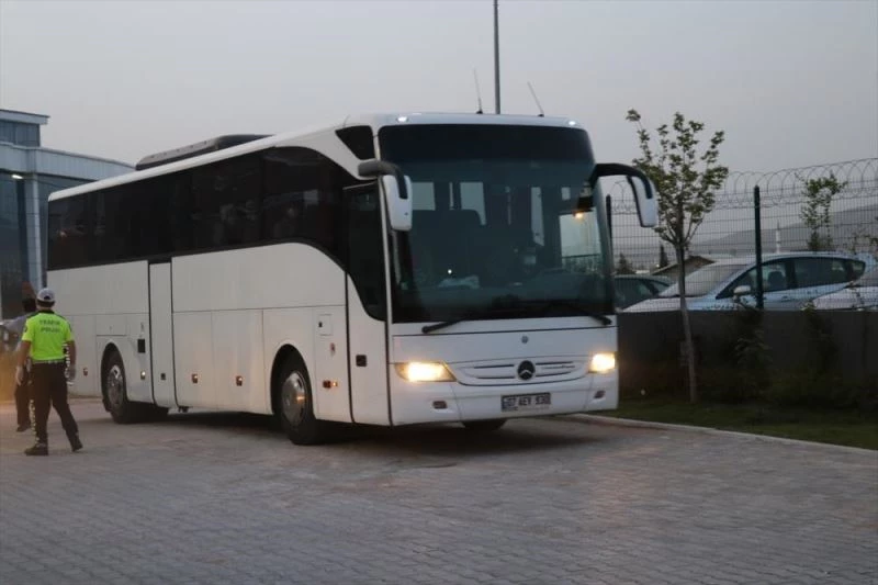 Havalimaninda bekleyen saglik ekiplerince kontrolden geçirilen 294 kisi, sosyal mesafe kuralini dikkate alarak, otobüslere bindi.