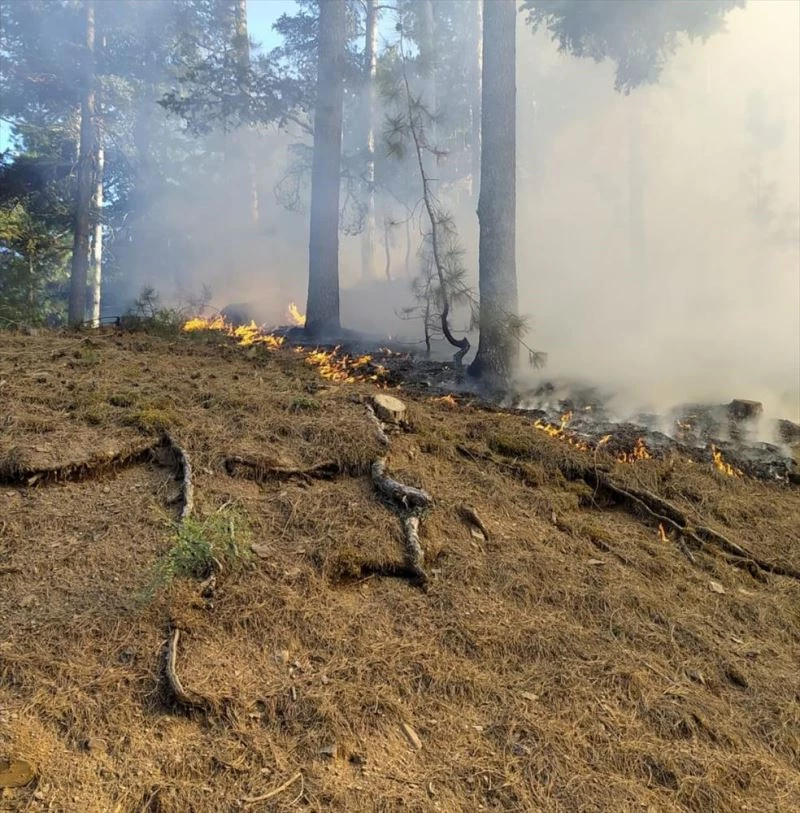 Kapıkaya Mahallesi'nde ormanlık alanda henüz belirlenemeyen nedenle yangın çıktı.