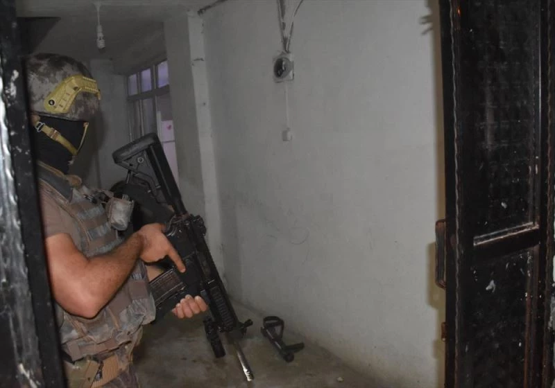 Evlerin kapıları koçbaşıyla kırılarak narkotik köpeğiyle arama yapıldı. Bu sırada özel harekat polisleri sokak girişlerinde uzun namlulu silahlarla önlem aldı.