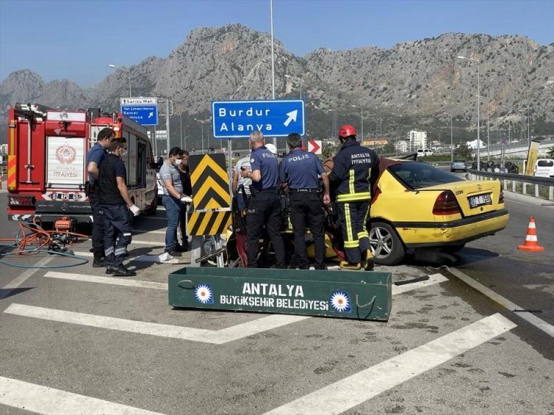 Ertem Istıl'ın (23) kullandığı 07 T 1578 plakalı taksi, Sarısu Mahallesi Akdeniz Bulvarı'ndaki bariyere çarptı.