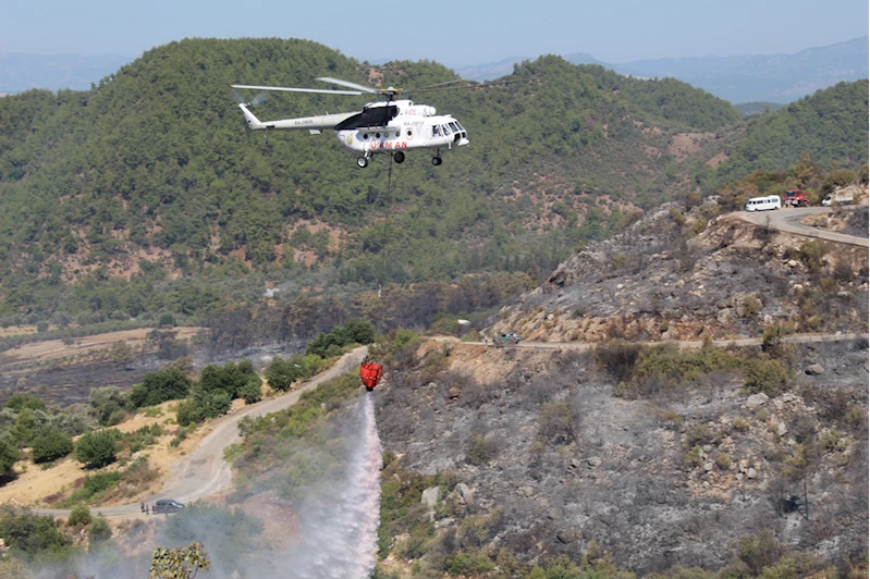 Yumaklar Mahallesi'nde dün çıkan orman yangınına, 8 uçak, 6 helikopter, 70 arazöz, 11 su ikmal aracı, 5 iş makinesi ve çok sayıda yangın söndürme işçisi ile müdahale edilmişti.