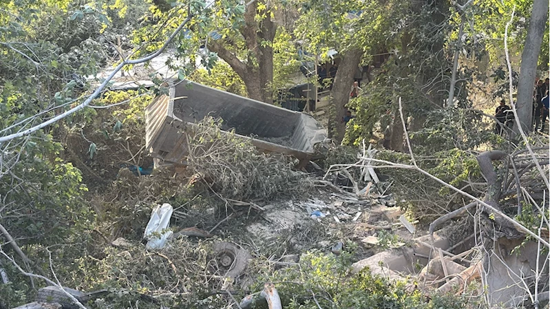 HATAY - Hatay'ın Defne ilçesinde freni arızalanan hafriyat kamyonunun uçuruma devrildiği anlara ilişkin güvenlik kamerası görüntüsü ortaya çıktı.