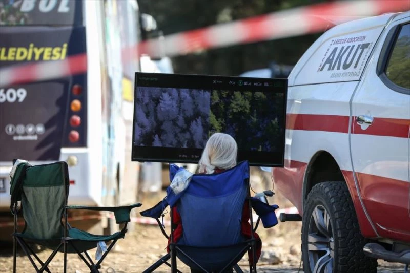 Bölgede drone ile yapılan çalışmalarda arama kurtarma köpekleri de kullanılıyor.