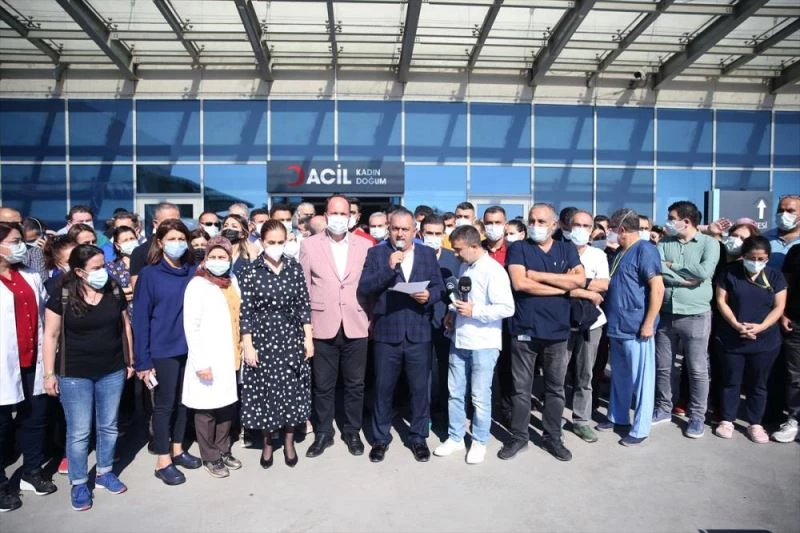 Sağlık çalışanları, basın açıklamasının ardından bir süre alkışla tempo tutarak olaya tepki gösterdi.