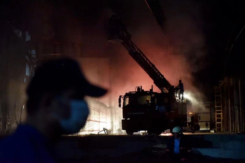 Sogutma çalismalari süren yanginin, deponun yanindaki insaat alaninda yapilan kaynak çalismasi sirasinda çiktigi iddia edildi.