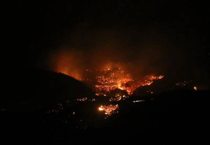 Bölgeden yükselen alevler, sinir bölgesinden görülüyor.