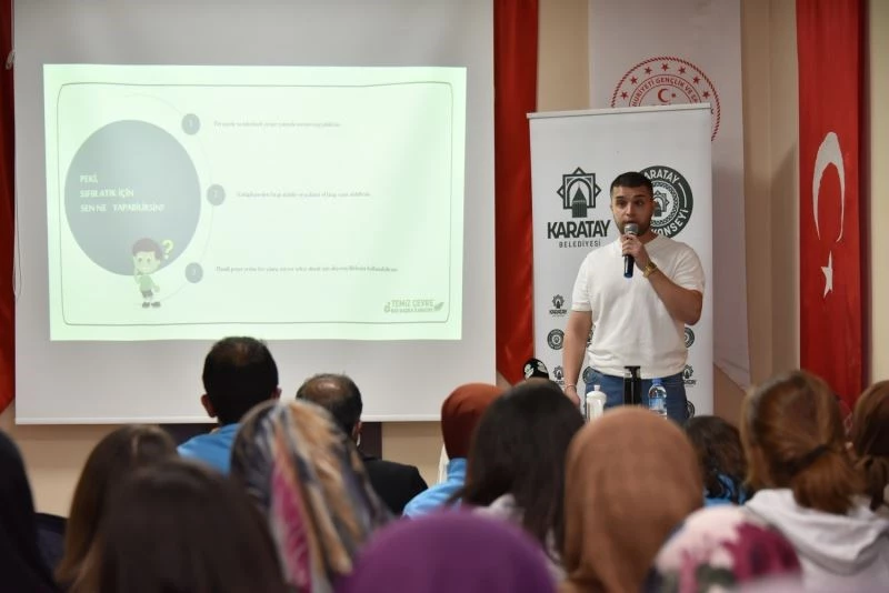 Karatay Belediyesi Kent Konseyi Sıfır Atık Çalışma Grubu öncülüğünde gerçekleştirilen eğitim faaliyetleri kapsamında Melike Hatun Kız Yurdunda kalan öğrencilere “Sıfır Atık Projesi Eğitimi” verildi. Eğitimlerde öğrencilerde çevre bilincinin oluşması, israfın önlenerek kaynakların daha verimli kullanılabilmesi için geri dönüşümün önemi, çöp olarak bilinen atıkların geri dönüşüm sayesinde tekrar kullanılabilir hale getirildiği, bu sayede ülke ekonomisine katkıda bulunulduğu ve atıkların nasıl toplanması gerektiği tek tek anlatıldı. Melike Hatun Kız Öğrenci Yurdunda gerçekleştirilen programda ilk olarak Karatay Belediyesi’nin sıfır atık konusunda yaptığı çalışmalar hakkında öğrencilere sunum yapan Karatay Kent Konseyi Sıfır Atık Çalışma Grubu Gönüllüsü Çevre Mühendisi Mücahit Bulut, plastik, metal, kompozit, kağıt ürünleri, cam gibi geri dönüştürülerek ekonomiye kazandırılabilecek atıkların sıfır atık uygulamaları, oluşan atıkların ayrıştırılarak yeniden kullanılmasının önemi ve bireylerin üzerine düşen sorumlulukları öğrencilerle paylaştı.