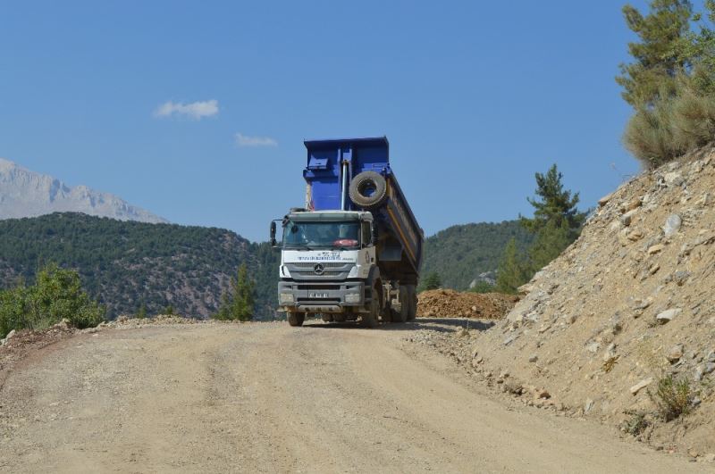 Antalya Büyükşehir Belediyesi Gündoğmuş ile Alanya ilçelerini birbirine bağlayan Köprülü yayla yolunda stabilize yol çalışması yapıyor.
