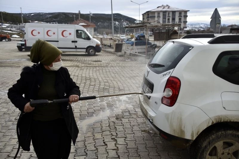 Gümüşhane’nin Şiran ilçesinde yaklaşık 20 yıldır oto yıkamacılığı yaparak ailesini geçindiren Demet Yılmaz, engelli eşi ve çocuklarının herşeyi oldu.