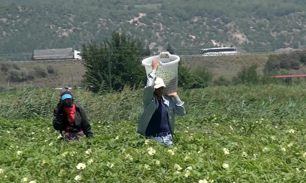 Osmaniye`de, hasadı en zor olan sebze türlerinden bamyanın toplanmasına başlandı. Çiftçilikle uğraşan Aydın ailesinin her bir ferdi ise kavurucu yaz sıcağı altında saatlerce bamya hasadı yaparak ev ekonomisine katkı sağlıyor. Alternatif ürün olarak tarlalarına bu yıl bamya ektiklerini aktaran Çiftçi Halil Aydın, Türkiye`de ilk hasadının Osmaniye` de yapıldığını, haziran içerisinde başlayıp ekim ayı sonuna kadar devam ettiğini söyledi. Tarım makineleriyle hasadı yapılamayan bamyanın toplamasının oldukça zor ve zahmet isteyen bir ürün olduğunu belirten Aydın, "35-40 derece sıcaklıkta bayma hasadı yapıyoruz ve oldukça zorlanıyoruz. Para kazanmak kolay değil, kimimiz okuyoruz, kimimiz ise çalışıyoruz. Bu şekilde ilerleyip gidiyoruz." dedi. Baya fiyatların tarlada kilogramının 5-5,5 Liradan satıldığını belirten Aydın, "Bu kadar zor şartlarda hasat yapıyoruz. İlacı, gübresi, çapası, suyu derken elimize pek bir şey kalmıyor. Hasadının zor olmasının yanı sıra bayağı masraflıda bir iş, hafta sonuna elimize pek bir şey kalmıyor. karın tokluğuna çalışıyoruz." şeklinde konuştu.