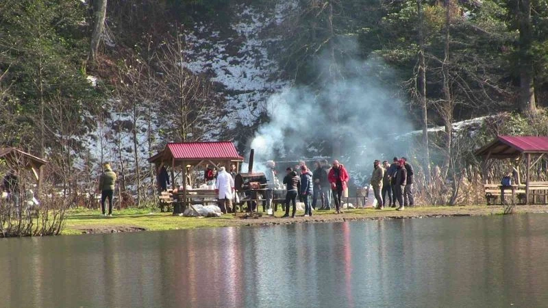 Güneşli havayı fırsat bilen vatandaşlar Karagöl’e akın etti