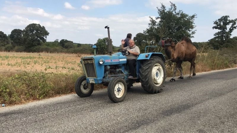 Çanakkale’nin Çan ilçesinde yaşayan Sefer Taşkın, traktörü ile devesini güreşlere hazırlıyor. Taşkın, “Bunlar keyif devesi insanı dinlemez, elle çekmek zor oluyor. Bizim gücümüz deveyi çekmeye yetmiyor. Traktörle götürüp getiriyoruz. Bu şekilde devemizi güreşlere hazırlıyoruz” dedi.