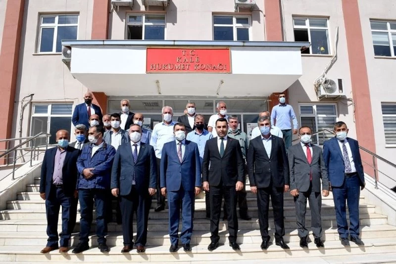 Kale Kaymakamlığı görevine yeni başlayan Abdulselam Bıçak’a hayırlı olsun ziyaretinde bulunan Büyükşehir Belediye Başkanı Selahattin Gürkan, "Kale İlçe Kaymakamımıza yeni görevinde başarılar diliyorum. Kale ilçemiz yeşiliyle, mavisiyle, barajıyla güzel bir ilçemiz. Kale ilçemizin 1990 yılından sonra kurulması nedeniyle kuruluş süreci devam ediyor. 24 Ocak’ta yaşadığımız depremden etkilenen ilçelerimizden bir tanesi. Bu anlamda Çevre ve Şehircilik Bakanlığımız ile birlikte Büyükşehir Belediyesi olarak burada ki alt yapı eksikliklerinin giderilmesi ve yeni konutların yapılması noktasında gerekli gayreti ilgili birimlerimiz gösteriyor. Bugünde yapılan çalışmaları yerinde görmek ve incelemek için Kale ilçemize geldik. Kale ilçemizde değerli belediye başkanımız, ilçe başkanlarımız, muhtarlarımız ve Kaymakamımızın çok yakın ilgi ve alakasını gördük. Yakın ilgi ve sıcak karşılamalarından dolayı teşekkür ediyorum. Vatandaşa hizmeti ayağına götürmeyi şiar edinmiş bir düşüncenin insanıyız. Özellikle 21.yy’da artık ihtiyaç duyacakları yol, su, asfalt ve kanalizasyon gibi hizmetleri götürmemiz gerekiyordu. Arkadaşlarımız yoğun bir çalışma içerisindeler ve güzel çalışmalar yapmışlar. Asfalt ve sathi kaplama noktasında en ücra yerlere kadar ulaşmışız.