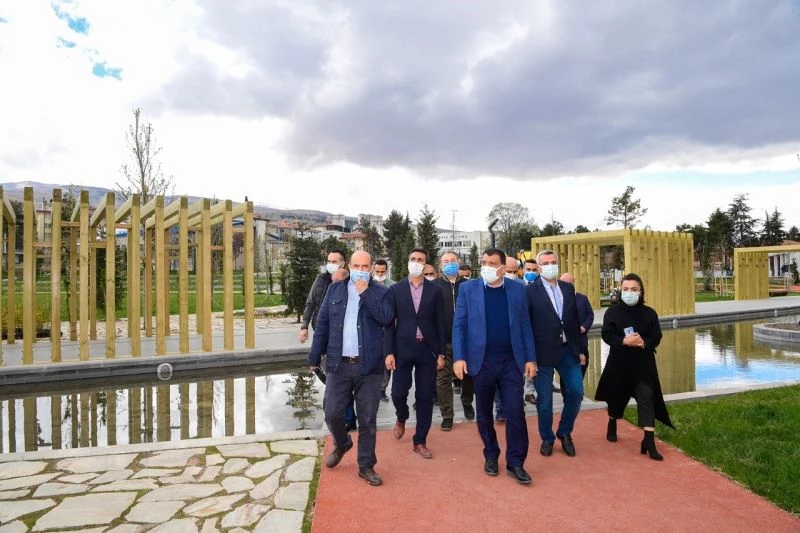 Gürkan, tamamlanan millet bahçesinde incelemede bulundu.