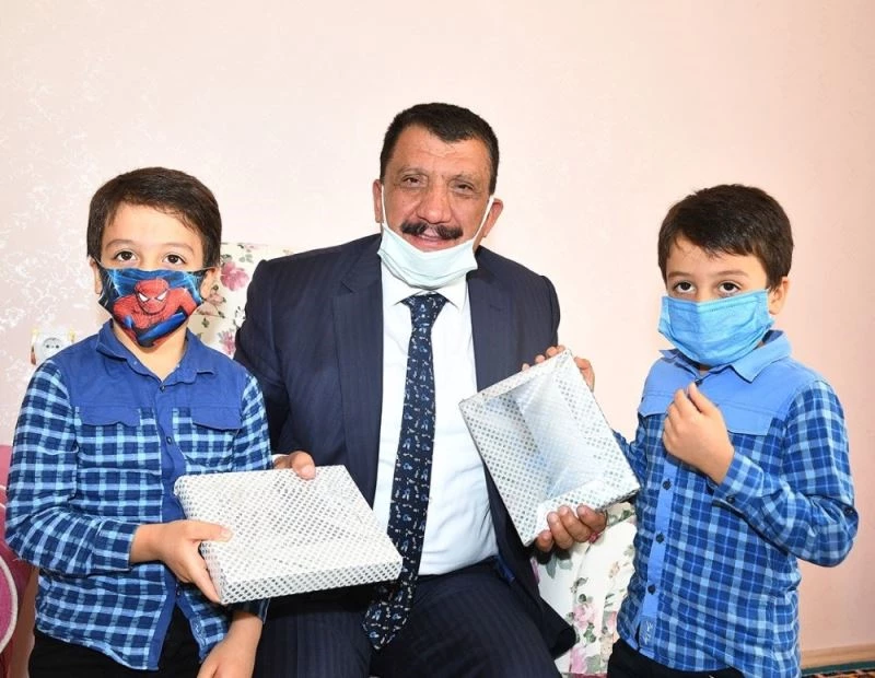 Malatya Büyükşehir Belediye Başkanı Selahattin Gürkan, Malatya Minibüsçüler ve Umum Servis Araçları Odası Başkanı Mesut İnce ile birlikte servisçi esnafının pandemi nedeniyle sıkıntılar yaşayan bir ailesini ziyaret etti, öğrenci çocuklarına tablet hediye etti.
