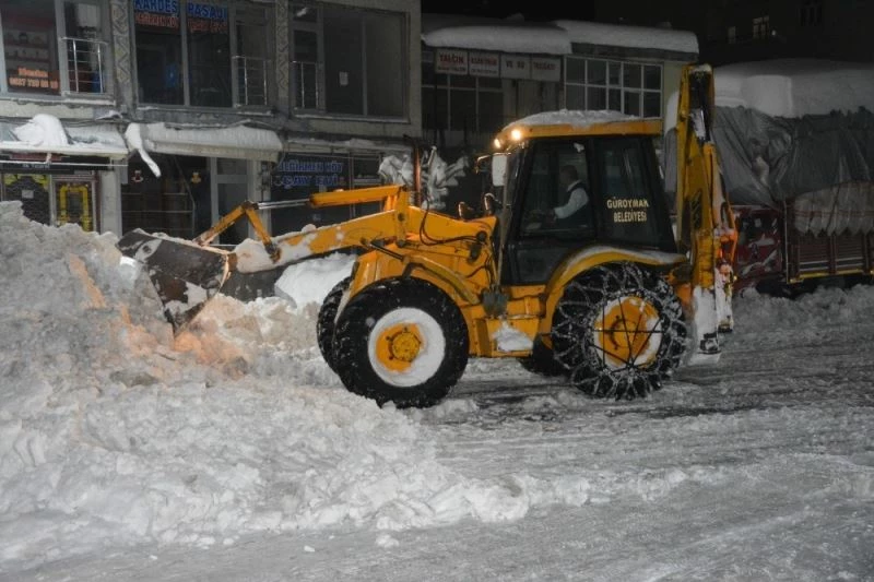 Bitlis’in Güroymak ilçesinde etkili olan yoğun kar yağışının ardından temizleme çalışmaları aralıksız sürüyor.