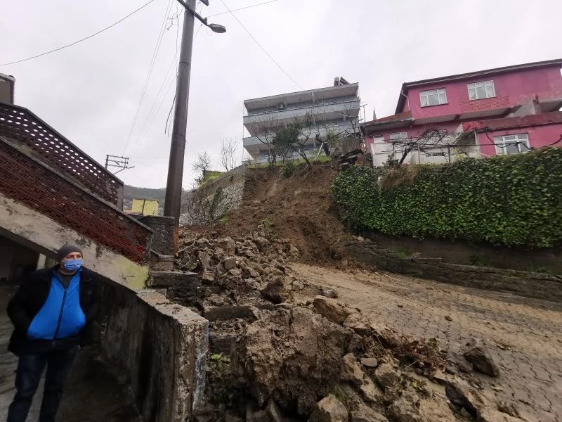 Zonguldak’ta sabah saatlerinde meydana gelen heyelan mahalle yolunu kapattı. Üzerine toprak yığılan bir araçta ise maddi hasar meydana geldi.