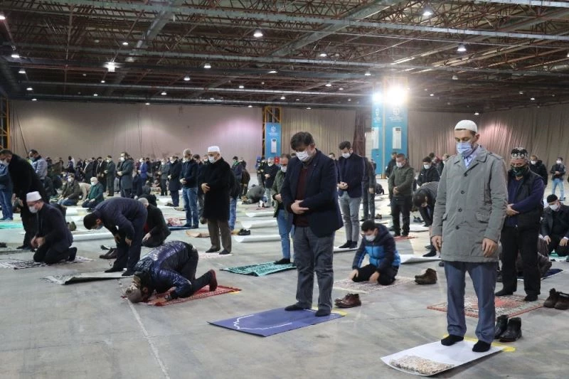 Vatandaşların Cuma namazlarını güvenli şekilde kılabilmeleri için uygun hale getirilen Kocaeli Uluslararası Fuar Merkezi’nde bugün ilk cuma namazı kılındı.