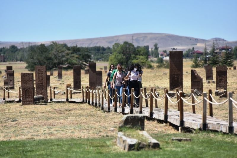 Anadolu’nun Orhun Abideleri olarak da bilinen ve dünyanın en büyük Türk-İslam Mezarlığı olan Ahlat Selçuklu Meydan Mezarlığı’nı ziyaret eden güvenlik güçleri ilk defa gördükleri abidevi mezar taşları karşısında hayranlıklarını gizleyemedi. 210 dönümlük alan üzerinde kurulu bulunan ve boyları 4,5 metreye kadar varan, üzerindeki yazı ve şekillerle her biri bir sanat eseri niteliği taşıyan mezar taşlarını inceleyen güvenlik güçleri ziyaretleri anısına fotoğraflar çekmeyi de ihmal etmediler.
