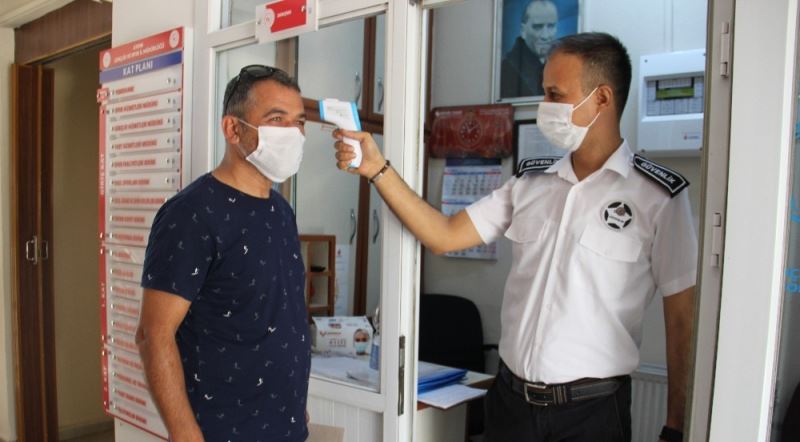 Korona virüs ile mücadele kapsamında güvenlik görevlilerinin yeni silahı ateşölçer oldu. Eskiden jop ve silahları kurum ve kuruluşların kapılarında bekleyen güvenlik görevlileri şimdi ateşölçer ile bekliyor.