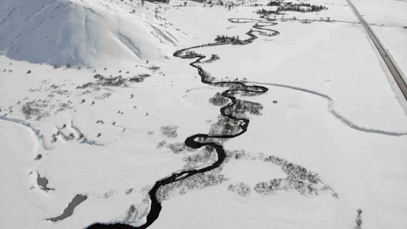 Yaz aylarında etrafını saran sarı çiçeklerle uzayıp giden menderesler, kış aylarında ise karlı dağlar arasında dümdüz ovanın içinde kıvrılıp uzayarak muhteşem manzara oluşturuyor. Bembeyaz kar örtüsünün arasından süzülen menderes kıvrımlarının oluşturduğu kış güzelliği ise havadan görüntülendi.