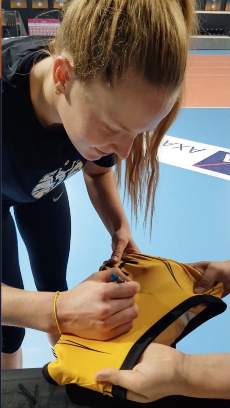 VakıfBank Kadın Voleybol Takımı’nın İsveçli oyuncusu Isabelle Haak, koruyucu ekipmanının arkasına ’Haak’ yazan sağlık görevlisi Gökhan Yılmaz’a verdiği imzalı forma sözünü yerine getirdi.