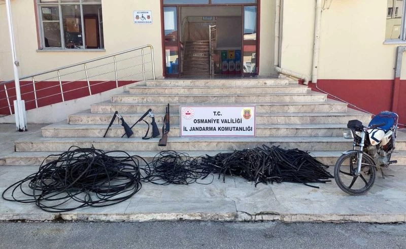 Edinilen bilgiye göre, İl Jandarma Komutanlığı’na bağlı Jandarma Suç Araştırma Timi (JASAT) Kadirli ilçesinde çalınan haberleşme ve enerji nakil kablolarıyla ilgili çalışma başlattı. Yapılan fiziki takibin ardından kabloları çaldıkları belirlenen C.G. ve E.Z. isimli şahıslar kablolarla birlikte saklandıkları adreste yakalandı.