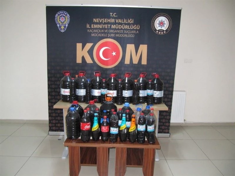 Nevşehir İl Emniyet Müdürlüğü Kaçakçılık ve Organize Suçlarla Mücadele Şube Müdürlüğü (KOM) ekipleri tarafından Hacıbektaş ilçesinde 134 litre el yapımı kaçak şarap ele geçirildi.