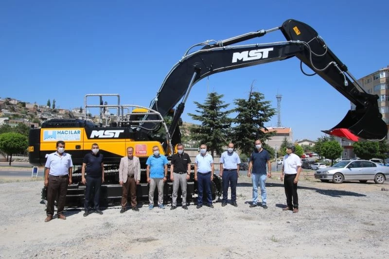 Hacılar’ın coğrafi yapısı nedeniyle belediye hizmetlerinde kullanımı için önemli bir ihtiyacının giderildiğine vurgu yapan Hacılar Belediye Başkanı Bilal Özdoğan, Türkiye Belediyeler Birliği tarafından hibe edilmesinin ardından ilçeye getirilen ekskavatörü inceledi.