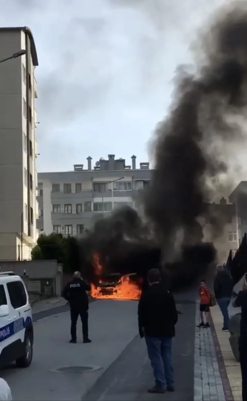 Yangında yaralanan olmazken araç kullanılamaz hale geldi. Hafif ticari aracın alev alev yanma anı cep telefon kamerasına yansıdı.