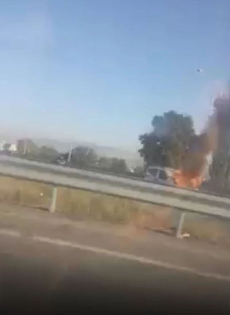 Bursa-Ankara yolunda seyir halindeki hafif ticari araç alev alev yandı