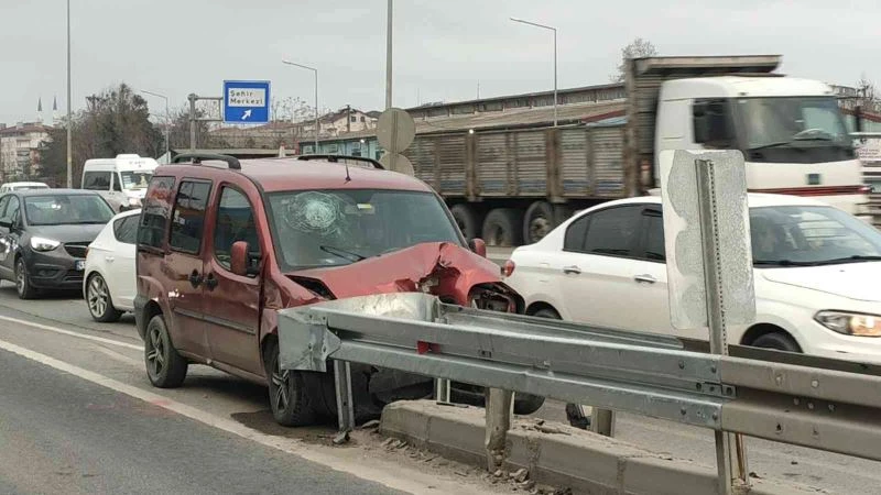 Hafif ticari araç D-100’de bariyere çarptı: 1 yaralı