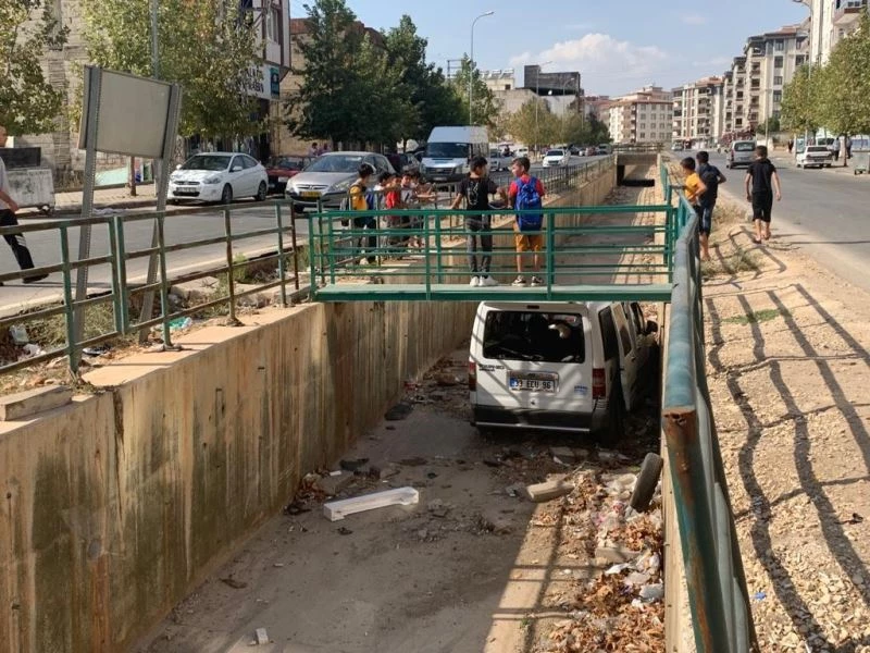 Gaziantep’te direk hakimiyeti kaybeden hafif ticari araç kanala uçtu. Kazada, kadın sürücü ve çocuğu yaralandı.