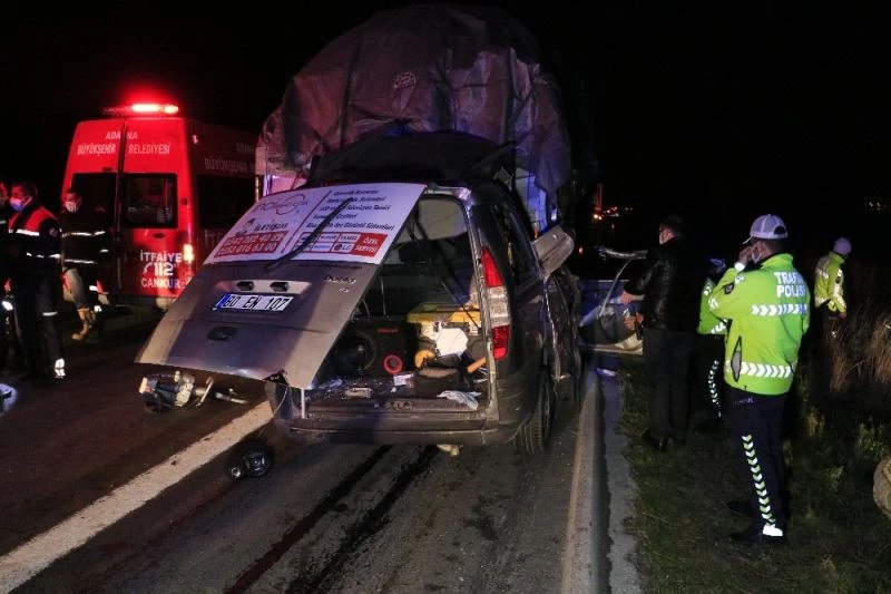 Adana’nın Ceyhan ilçesine bağlı TAG otoyolunda hafif ticari araç tıra arkadan çarptı. Kazada araç içerisinde bulunan 3 kişi yaşamını yitirdi.