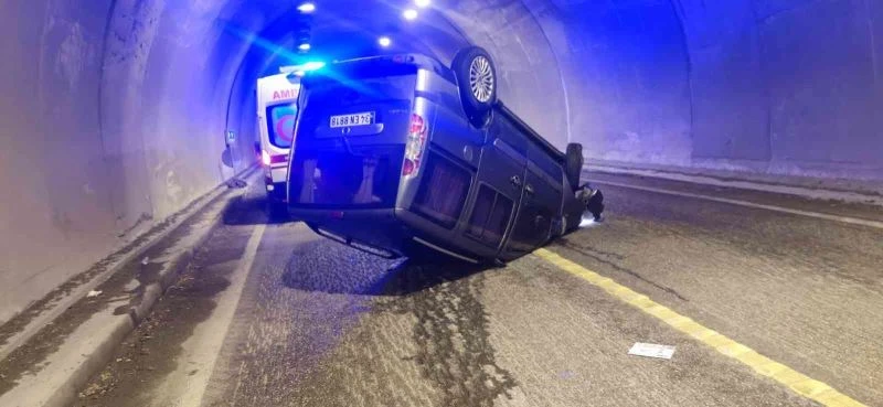 Hafif ticari araç tünelde duvara çarpıp ters döndü: 3’ü çocuk 5 yaralı