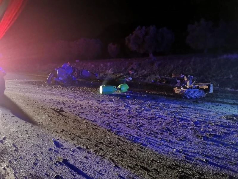 Hafif ticari ile çarpışan traktör ikiye bölündü: 2 yaralı