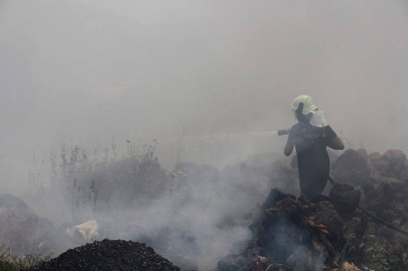 Hafriyat döküm alanında çıkan yangın paniğe sebep oldu