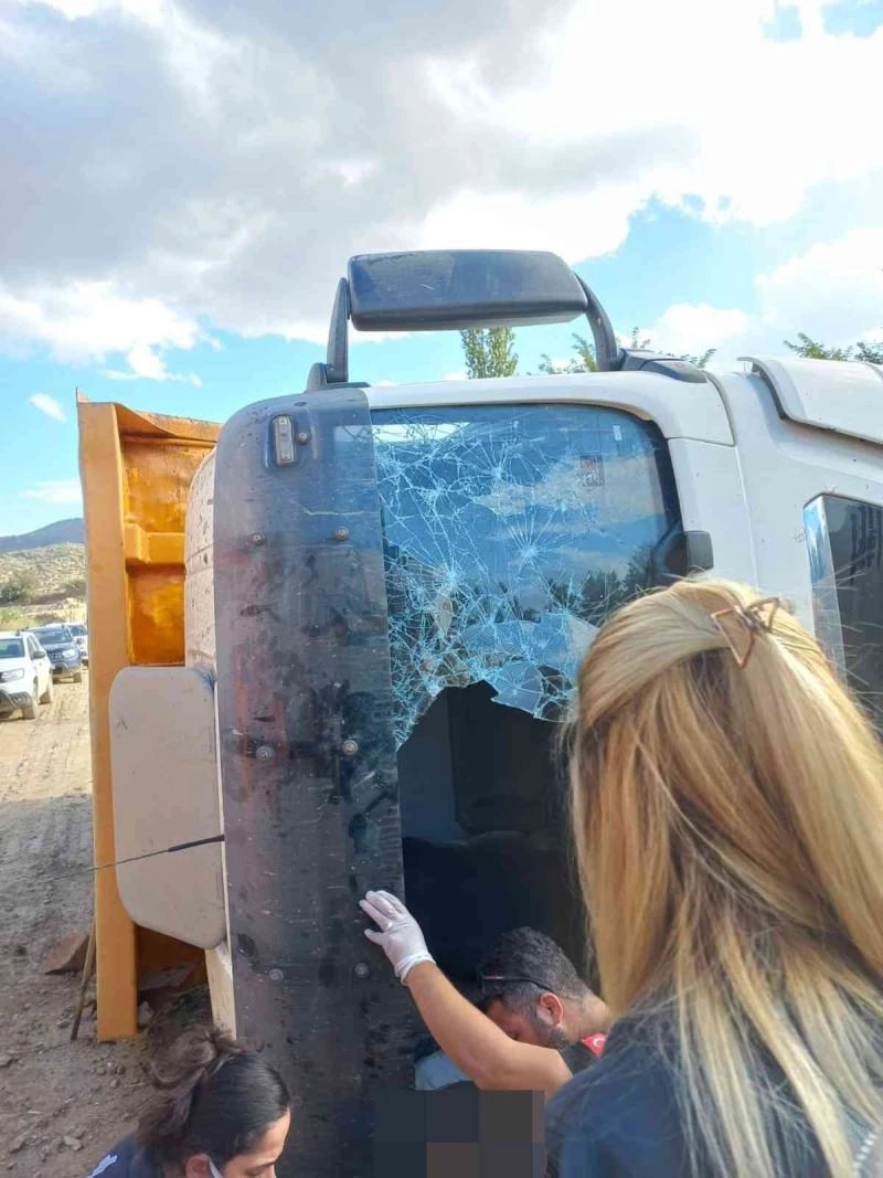 Aydın’ın Koçarlı ilçesinde devrilen hafriyat kamyonunun sürücüsü hayatını kaybetti.