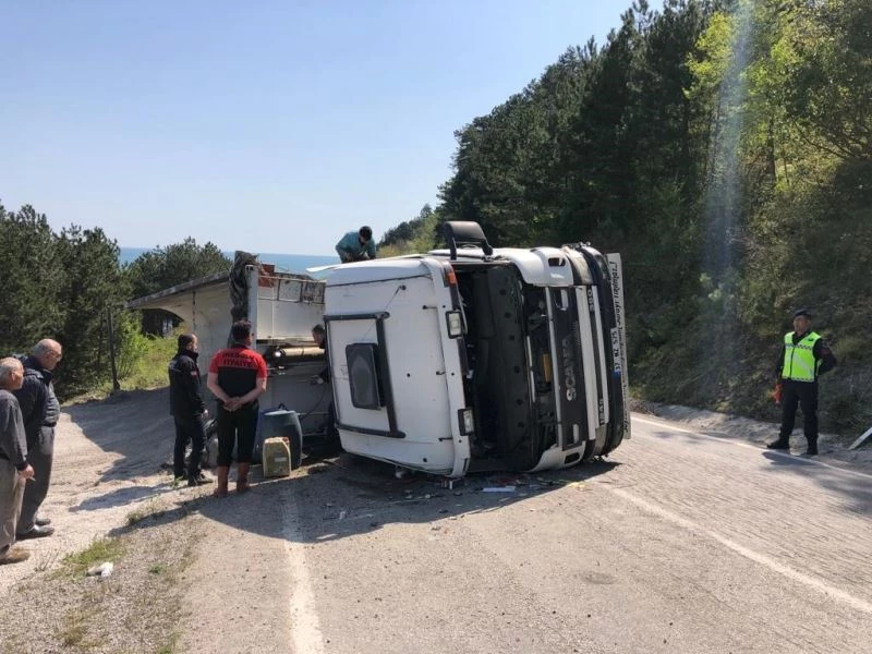 Kastamonu’nun İnebolu ilçesinde devrilen hafriyat kamyonunun sürücüsü yaralandı.