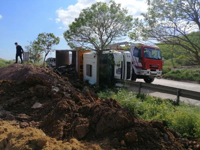 Kocaeli’de belediyeye ait hafriyat yüklü kamyon seyir halindeyken sürücüsünün kontrolünden çıkarak yol kenarına devrildi. Kazada sürücüsü hafif şekilde yaralandı.
