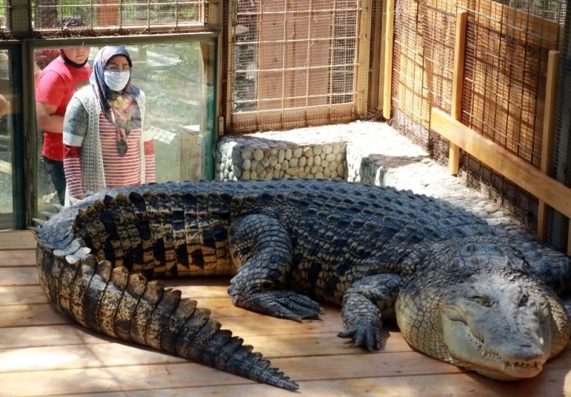 Antalya Büyükşehir Belediyesi Hayvanat Bahçesi’nde ‘Muhteşem Timi’ adlı timsahın büyüklüğü, görenleri hem ürkütüyor hem de ilgisini çekiyor. ‘Muhteşem Timi’ adı verilen ve şu anda uzunluğu 5 metre, ağırlığı da 350 kilograma ulaşan timsah, Türkiye’nin en büyük timsahı özeliğini taşıyor. Onu gören ziyaretçilerse hayretler içerisinde kalıp hemen cep telefonlarına sarılıyor.