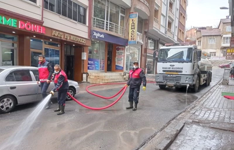 Hakkari Belediyesi ekipleri kentin değişik noktalarında genel temizlik çalışması başlatarak cadde ve sokakları yıkadı.