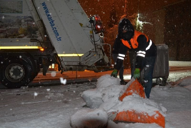 Akşam saatlerinde başlayan kar yağışı belirli aralıklarla etkisini sürdürüyor. Hakkari Belediyesi Temizlik İşleri Müdürlüğü ekipleri kar yığınlarının altında kalan çöpleri temizleyerek ilk kar mesaisine başladı. Yağışın bu şekilde devam etmesi üzerine birçok çöp noktasında çöp almalarının zorlanacağını ifade eden belediye ekibi gece geç saatlere kadar tüm çöp noktalarındaki çöpleri almaya çalışacaklarını belirtti.