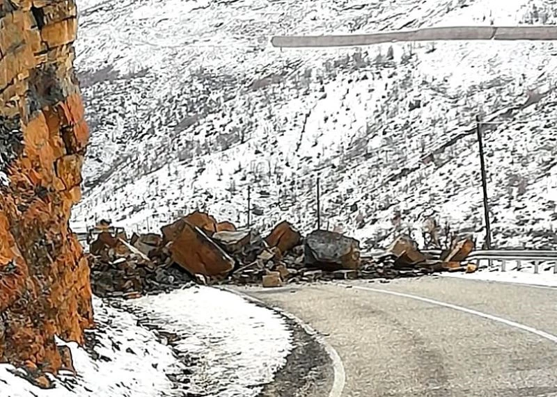 Hakkari’de etkili olan kar yağışının ardından yerinden kopan kayalar, Hakkari-Çukurca kara yolu üzerinde bulunan Köprülü köyü civarına düştü. Kara yolunda o sırada hiçbir aracın geçmemesi olası bir facianın önüne geçerken, yolda ise zamanla uzun araç konvoyu oluştu.