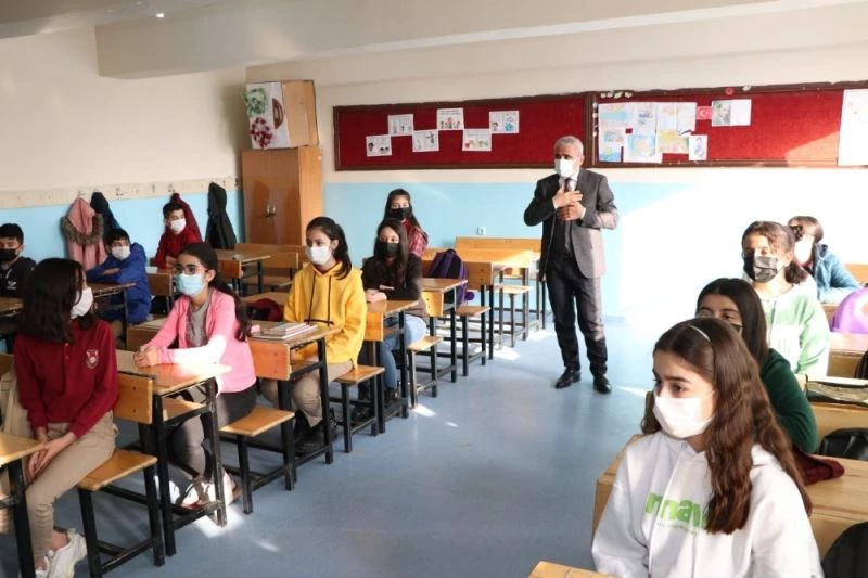 Müdür Gür ve beraberindekiler daha sonra sınıf ziyaretlerinde bulunarak öğretmen ve öğrencilerle bir araya geldi.