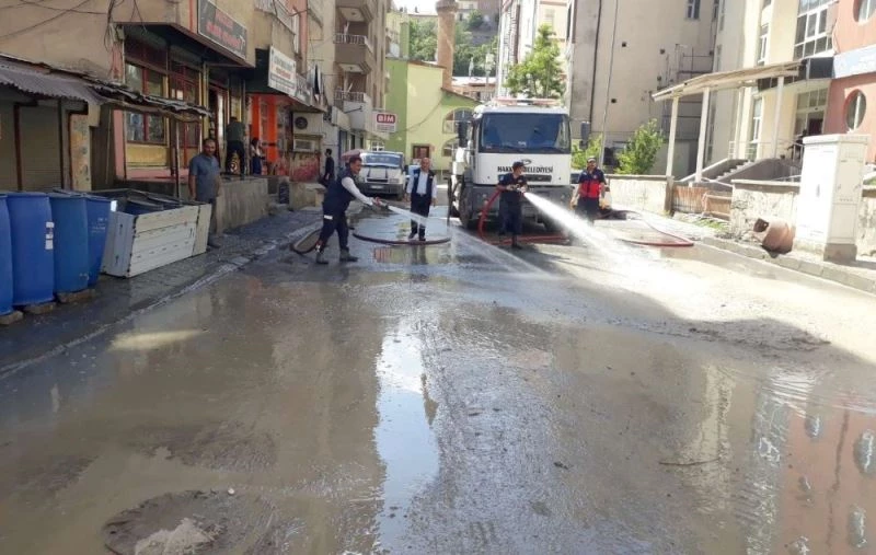 Hakkari Belediyesi İtfaiye Müdürlüğü ekipleri tarafından başlatılan korona virüsle mücadele çalışmaları kapsamında cadde ve sokaklar tazyikli suyla yıkandı.