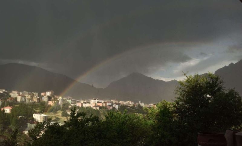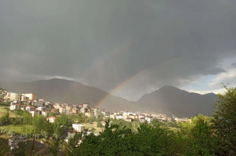 Hakkari’de yağışların ardından oluşan gökkuşağı seyrine doyumsuz bir güzellik oluşturdu.