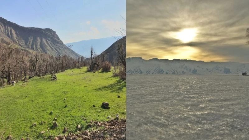 Hakkari’nin Irak sınırında bulunan Derecik ilçesindeki vatandaşlar yaz mevsiminden kalma günleri yaşarken, Yüksekova ilçesi ise mart ayına rağmen hala kar altında. Hava sıcaklığının 15 dereceyi aştığı Derecik’te boy vermeye başlayan otlarla her taraf yeşile bürünürken, baharın müjdecisi rengârenk çiçekler de açmaya başladı. Sıcak havayı fırsat bilen vatandaşlar bahar mesaisine başlayarak ağaç budama, fidan dikme ve bahçe temizliği için kolları sıvadı.