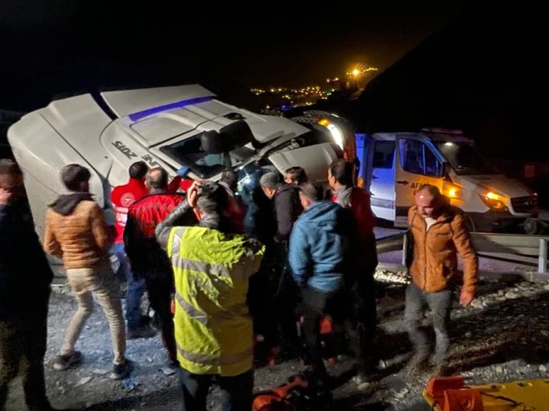 Kaza, akşam saatlerinde kent girişindeki Sere Sola mevkiinde meydana geldi. Hakkari’den Van istikametine gitmekte olan 06 KA 8144 plakalı kömür yüklü tırın lastiği patlaması sonucu yan yattı. İsmi öğrenilemeyen sürücü araçta sıkışırken beraberindeki 2 kişi ise kendi imkanlarıyla kurtulmayı başardı. Çevredeki sürücülerin haber vermesiyle bölgeye AFAD, itfaiye ve 112 Acil Servisi ekipleri sevk edildi. Ekiplerin saatlerce süren uğraşı sonucu araçta sıkışan tır şoförü kurtarılırken 3 yaralı ambulanslarla Hakkari Devlet Hastanesi’ne kaldırılarak tedavi altına alındı.