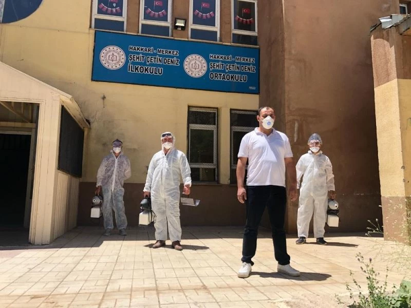 Hakkari Şehit Çetin Deniz İlk ve Ortaokulu, 20 Haziran’da yapılacak olan LGS için dezenfekte edildi.